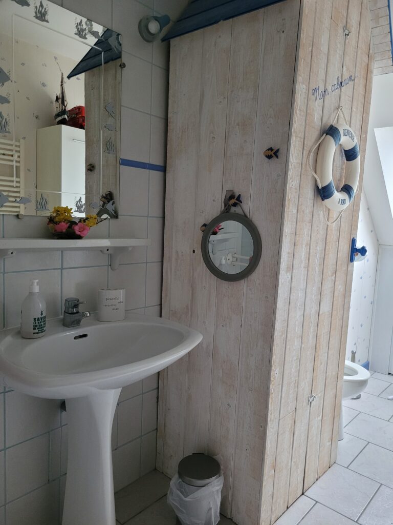 Le Buy Située à l’étage de la maison, cette chambre de 20 m2 dispose également d’un coin bureau. Un lit de dimension 160*200cm et une salle de bain privative sur le pallier vous permettront de profiter de votre séjour.