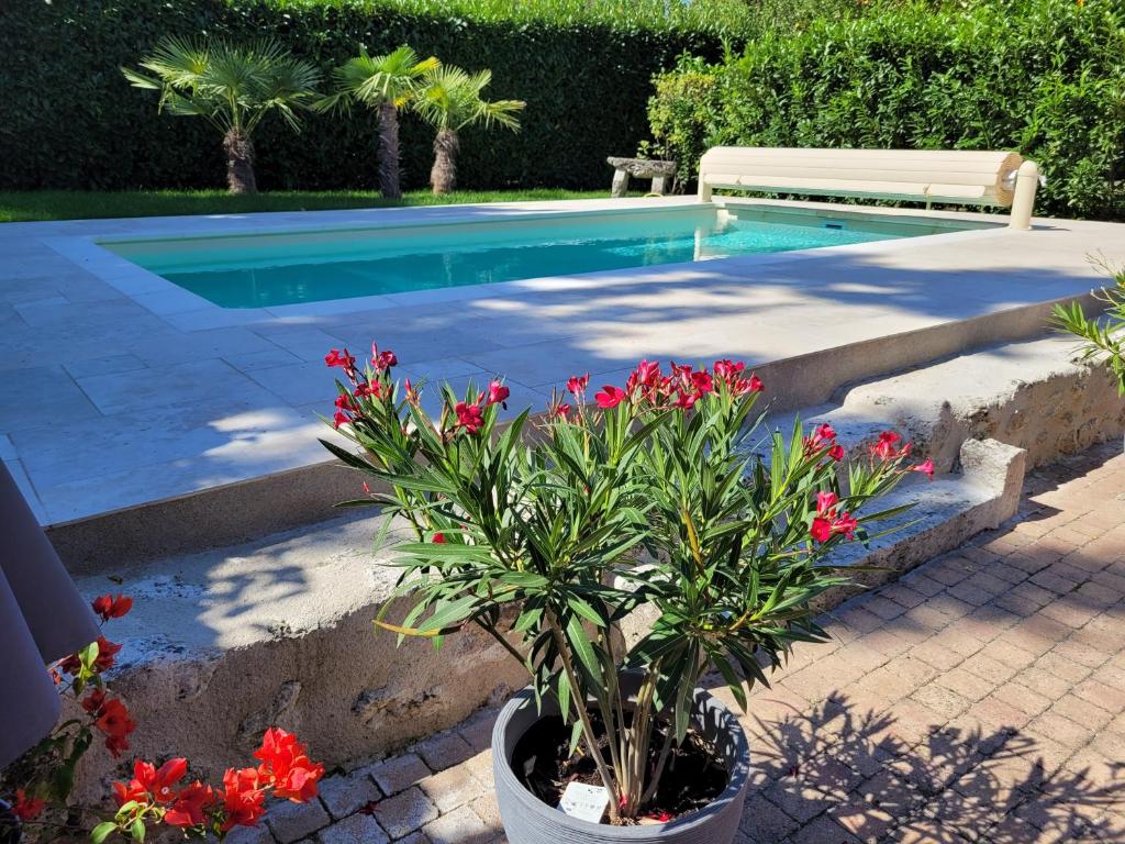 Jardin luxuriant où vous pouvez vous détendre et profiter du soleil. Piscine chauffée pour des moments de détente.